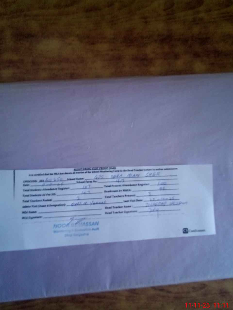 | Attendance Register | Head Teacher | MEA with School | Visit Proof |