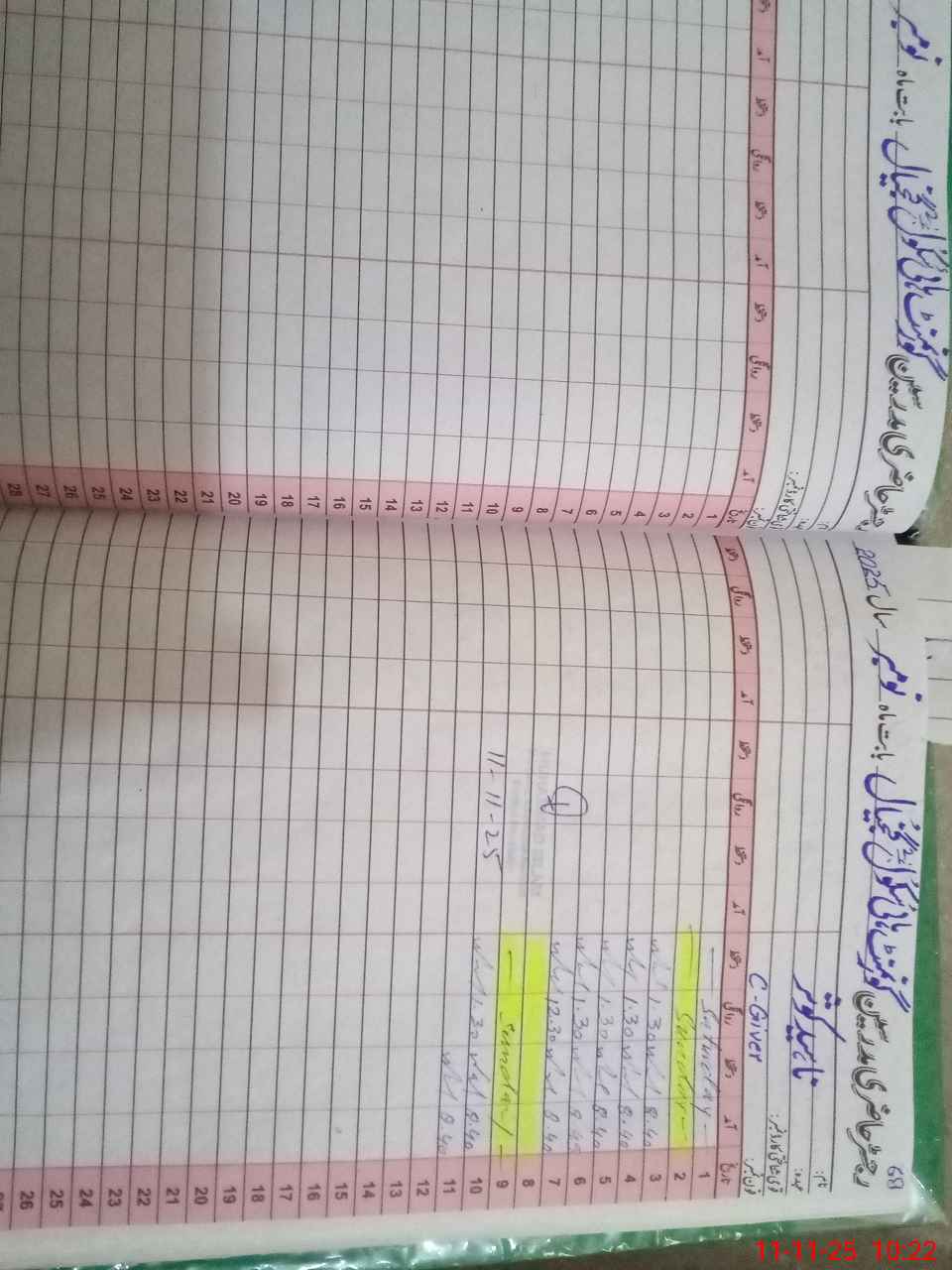 | CNIC | Full Name | Designation | R/C | Absence During Last Calender Month |