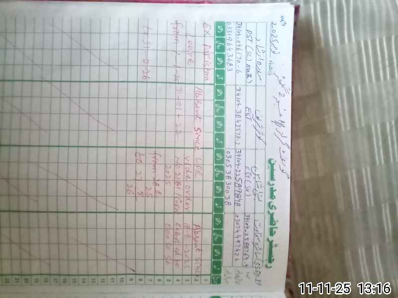 | 34**** | Ko**** Sh**** | ESE Arabic | Regular | 0 | 0 | 0 | 0 | 0 | 0 | 0 | 0 | 0 | Absent (Un-Authorized) |