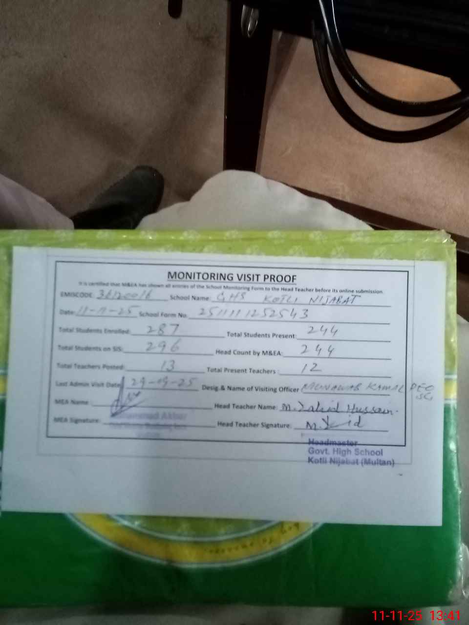 | EMIS Code: 36120016 | Name of School: GHS KOTLI NIJABAT | |||