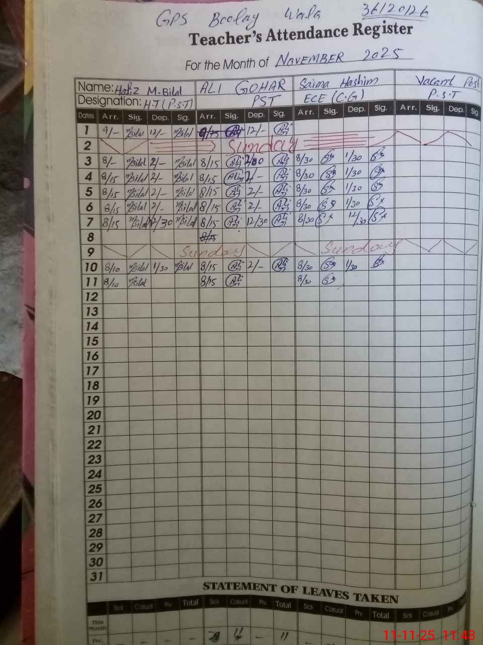 | EMIS Code: 36120126 | Name of School: GPS BOOLAY WALA P/O KOTLI NIJABAT | |||