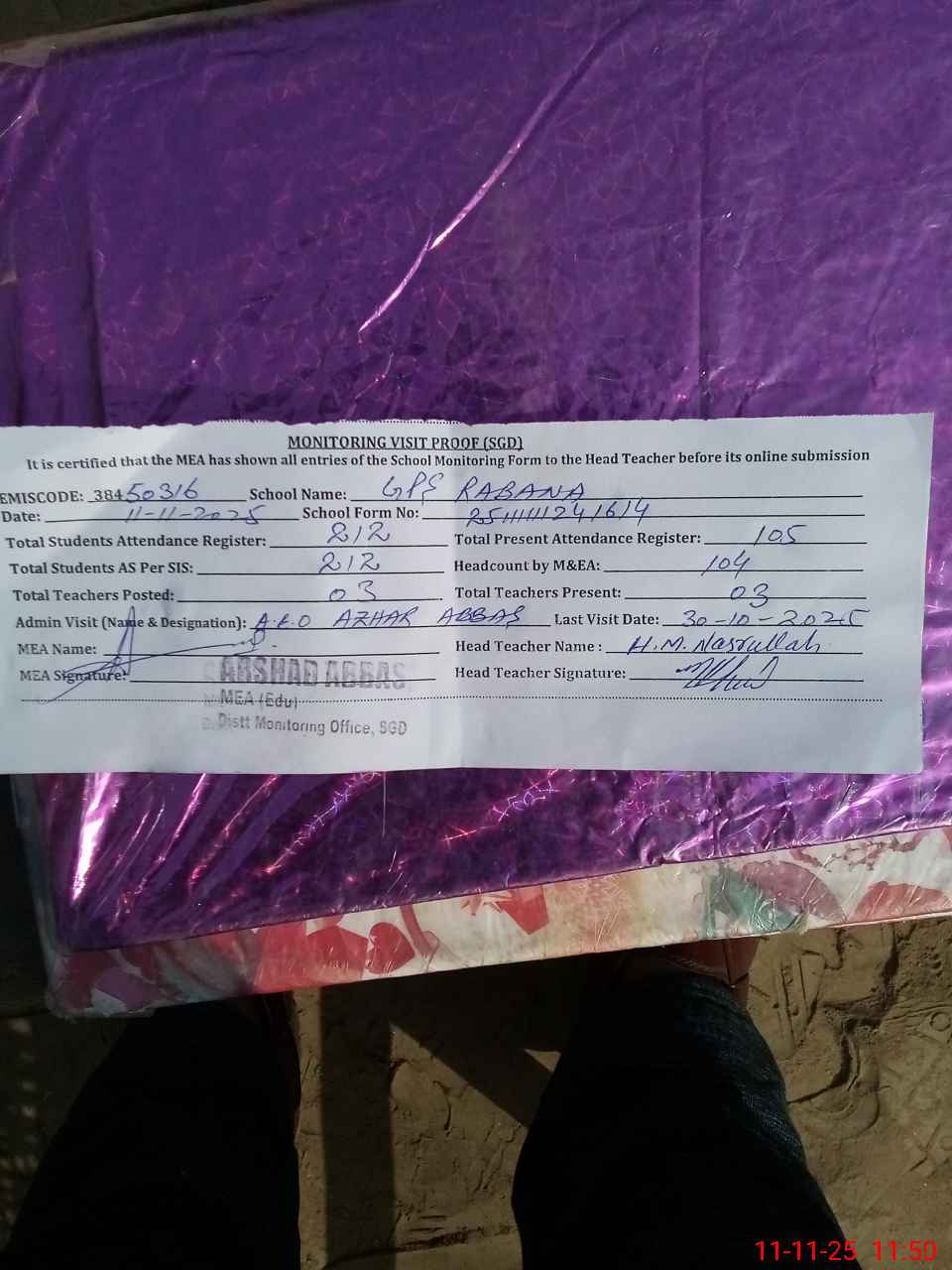 | EMIS Code: 38450316 | Name of School: GPS RABANA | |||