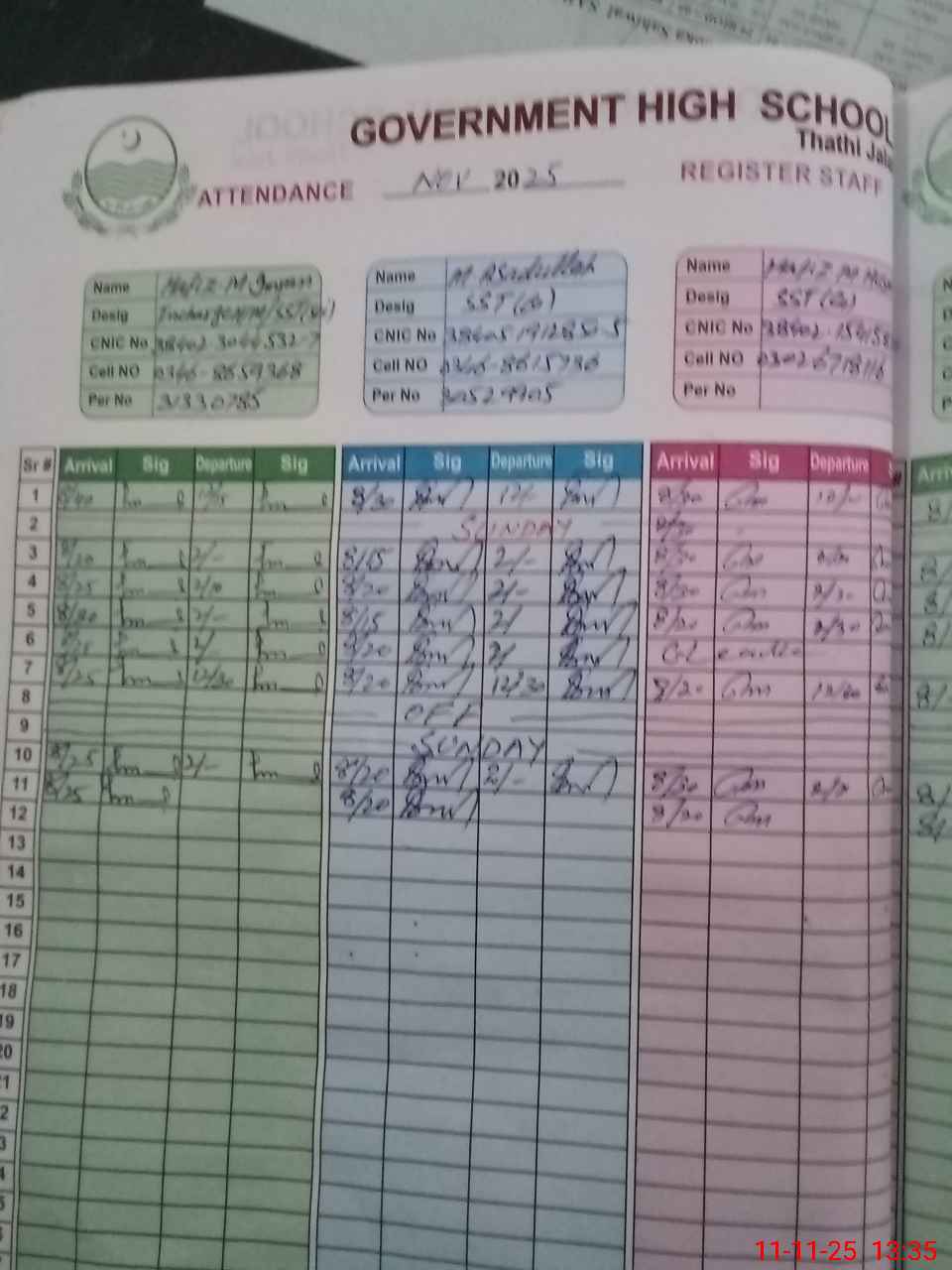 | Name: HA**** MU**** IM**** Designation: (School Headmaster's/Headmistress's) SST SCIENCE Phone/Cell Number: 03**** |