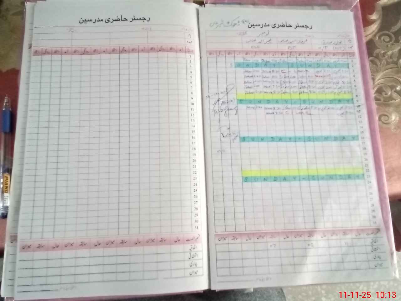 | CNIC | Full Name | Designation | R/C | Absence During Last Calender Month |