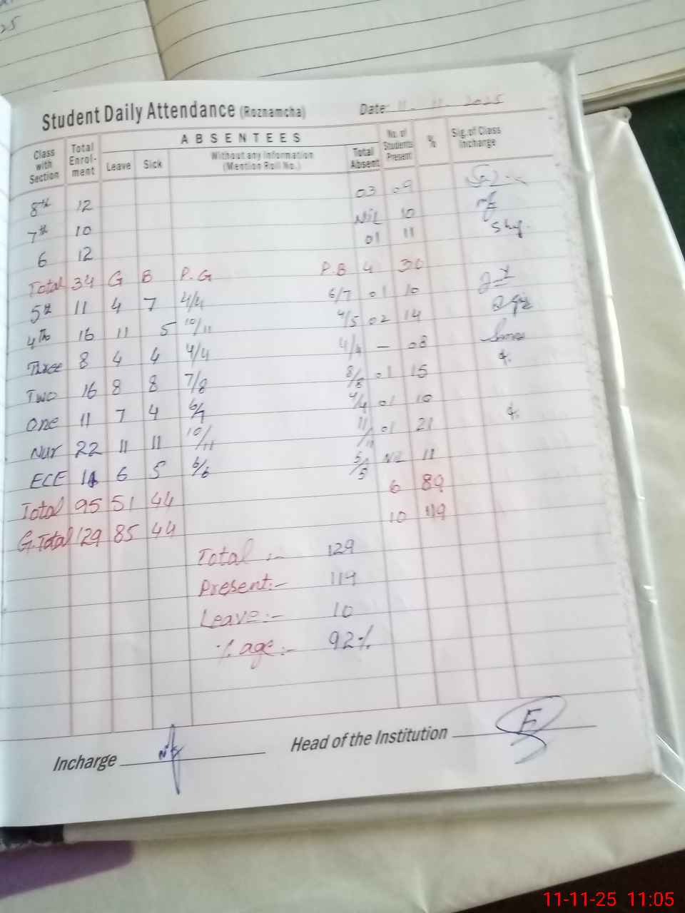 | Total Students Present | 11 | 0 | 22 | 10 | 14 | 8 | 14 | 10 | 11 | 10 | 9 | 119 | ||||