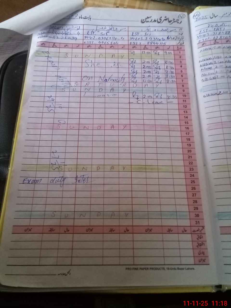 | Leave | Duty | Absent | Maternity | Medical | Ex- Pak |