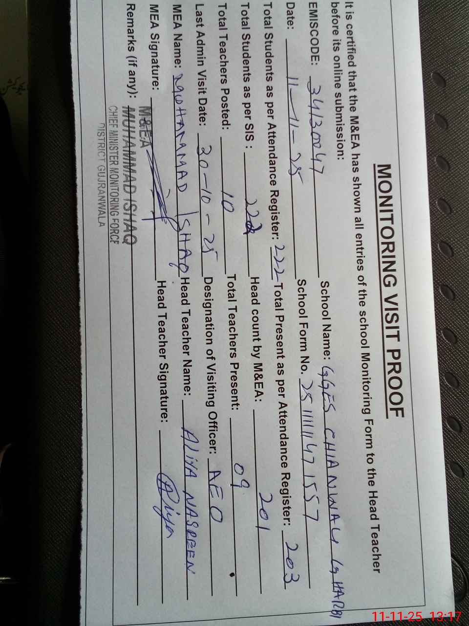 | EMIS Code: 34130047 | Name of School: GGES CHIANWALI GHARBI | |||