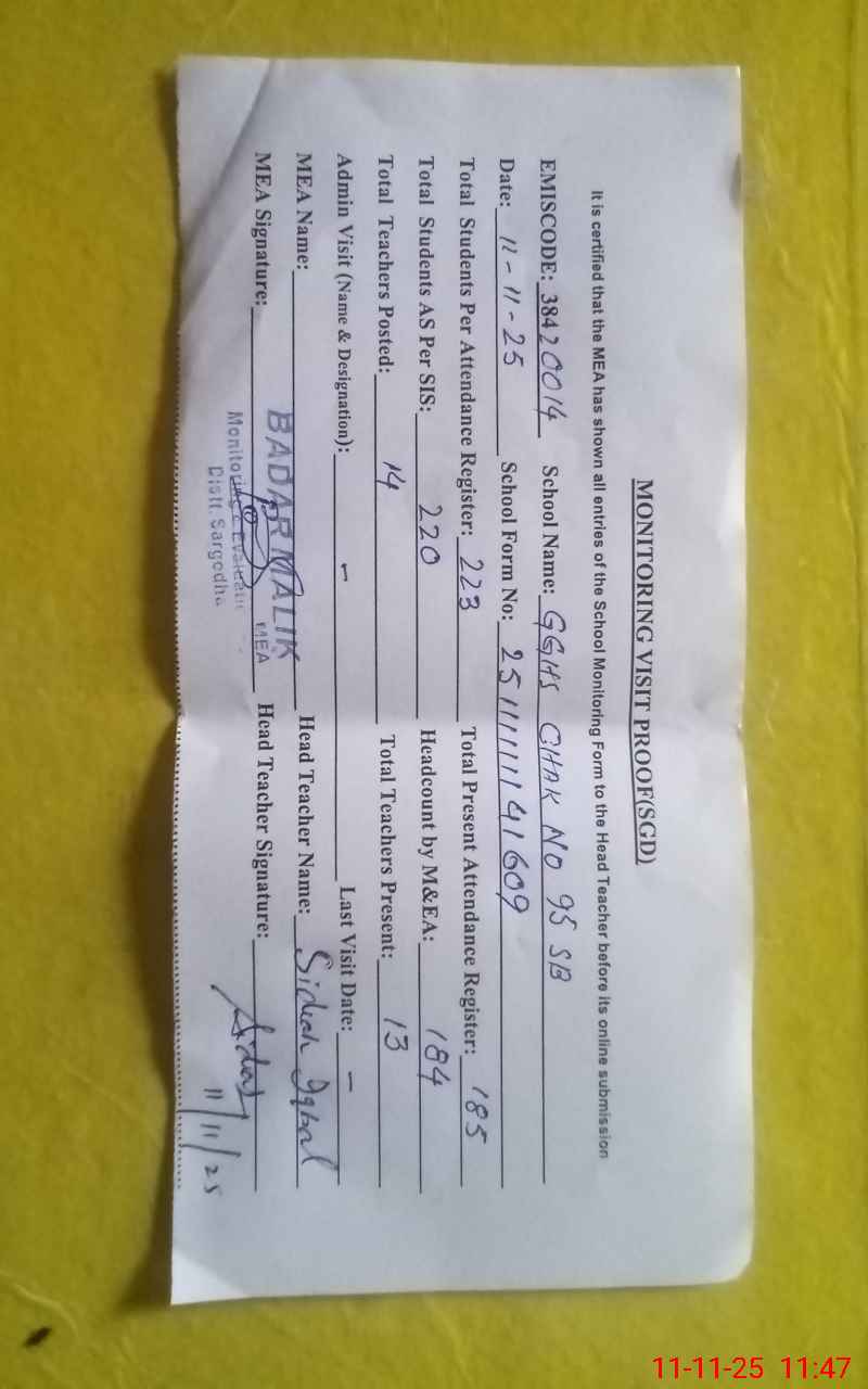 | EMIS Code: 38420014 | Name of School: GGHS CHAK NO.95 SB | |||