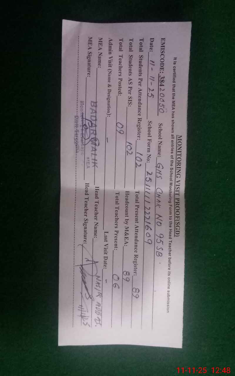 | EMIS Code: 38420050 | Name of School: GHS CHAK NO.95 SB | |||