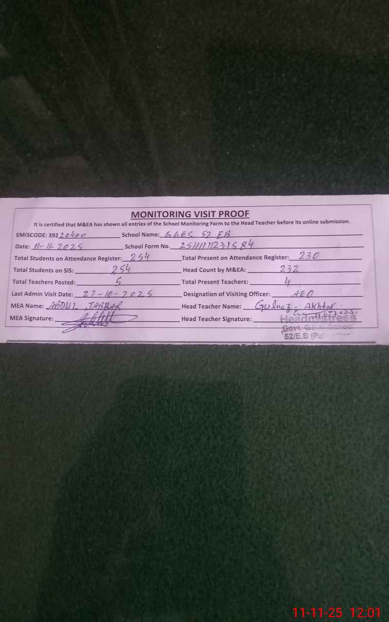 | EMIS Code: 39220400 | Name of School: GGES 52 EB PO 52 EB | |||