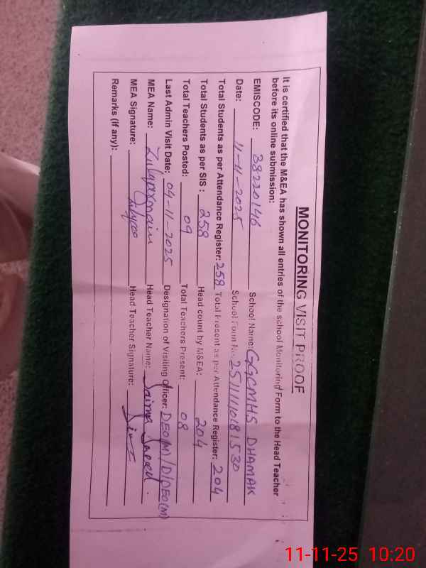 | EMIS Code: 38220146 | Name of School: GGCMHS DHAMAK | |||