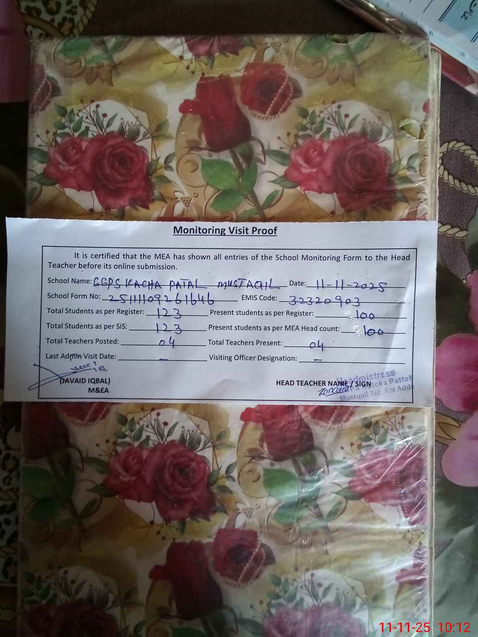 | EMIS Code: 32320903 | Name of School: GGPS KACHA PATTAL MUSTAQIL | |||