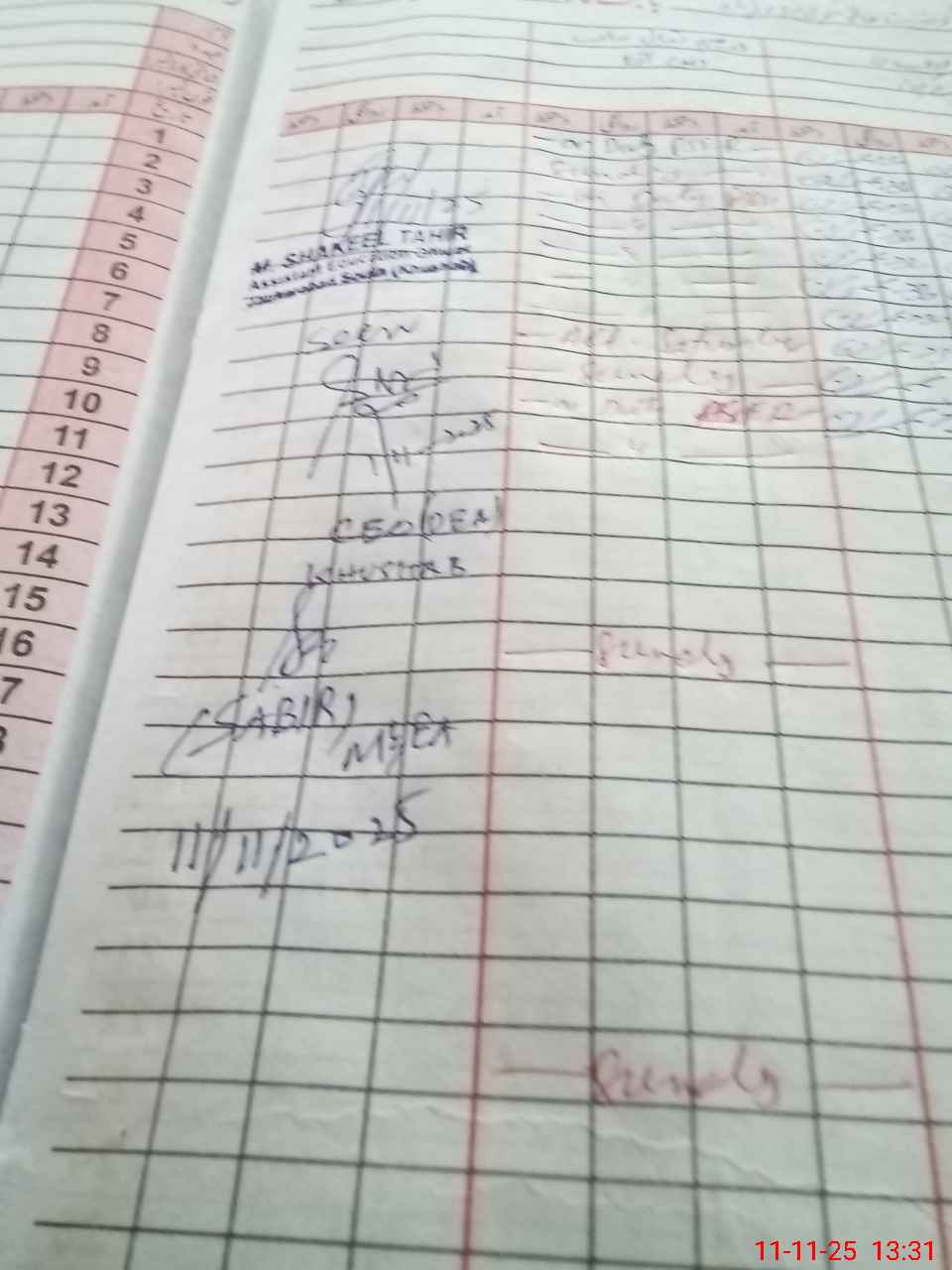 | CNIC | Full Name | Designation | R/C | Absence During Last Calender Month |
