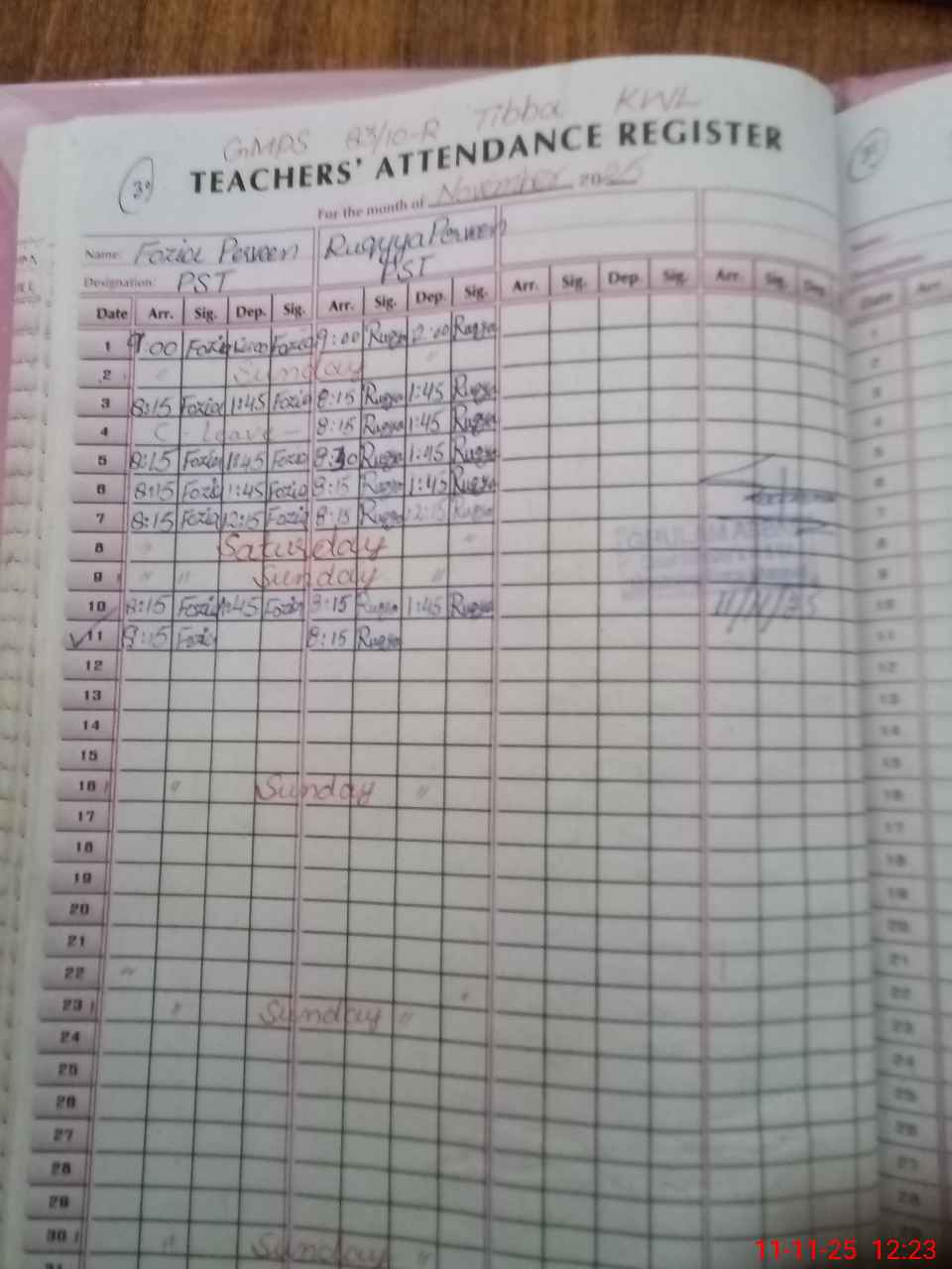 | CNIC | Full Name | Designation | R/C | Absence During Last Calender Month |