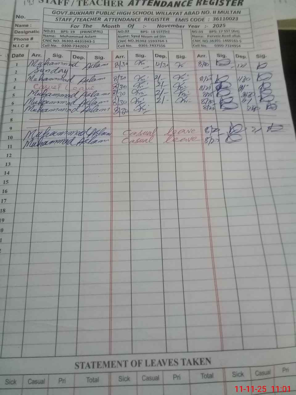 | Name: MU**** IS**** Designation: (School Headmaster's/Headmistress's) Principle Phone/Cell Number: 03**** |