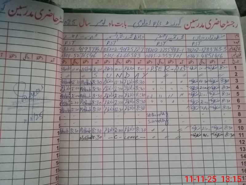 | Name: MA**** QA**** Designation: (School Headmaster's/Headmistress's) PST Phone/Cell Number: 03**** |