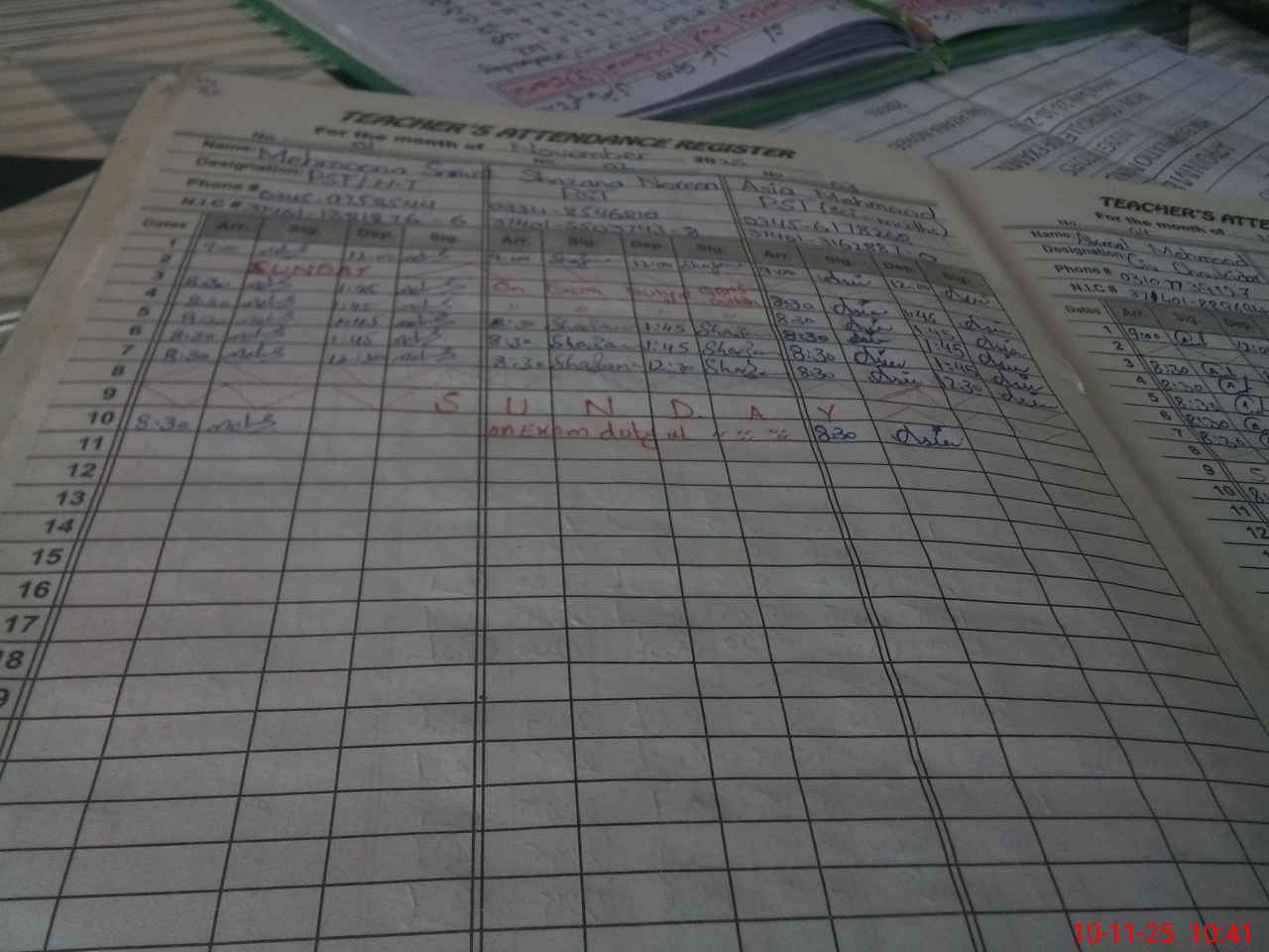 | CNIC | Full Name | Designation | R/C | Absence During Last Calender Month |