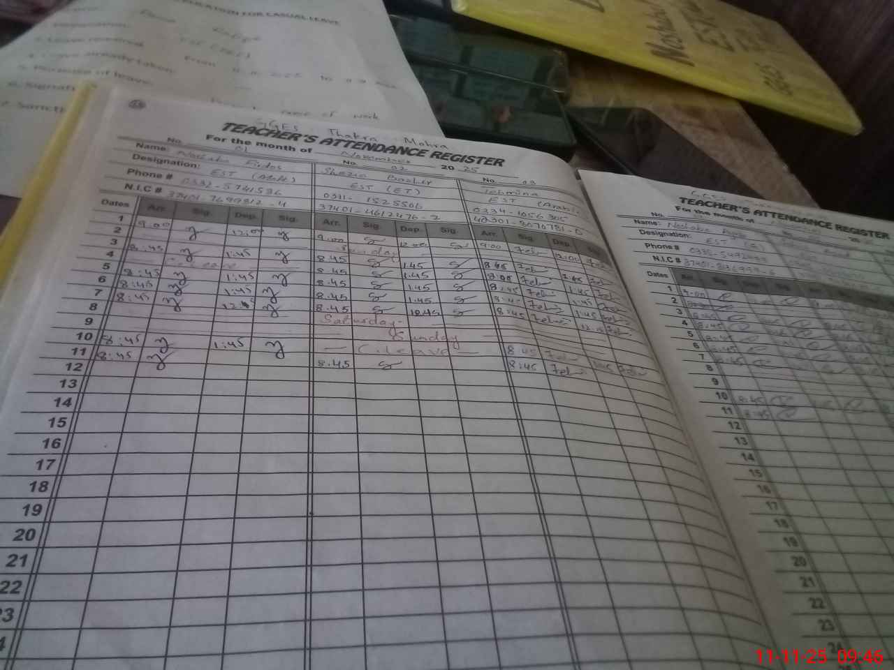 | CNIC | Full Name | Designation | R/C | Absence During Last Calender Month |