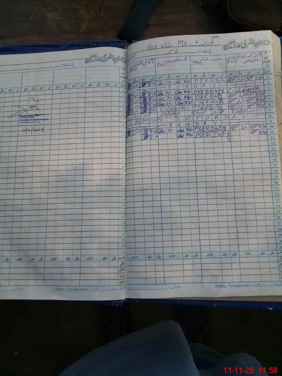 | CNIC | Full Name | Designation | R/C | Absence During Last Calender Month |