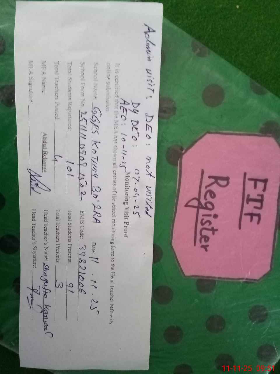 | EMIS Code: 39321006 | Name of School: GGPS KOTHAY 30/2-R | |||