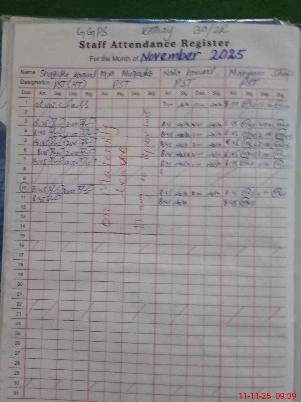 | Remarks (Use Separate Page if Required): There is no visit of DEO and Dy DEO AEO visited on 10 November 2025 | |||||