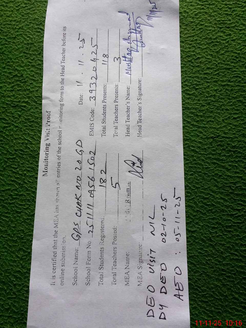 | EMIS Code: 39320425 | Name of School: GPS CHAK NO. 20/G.D | |||
