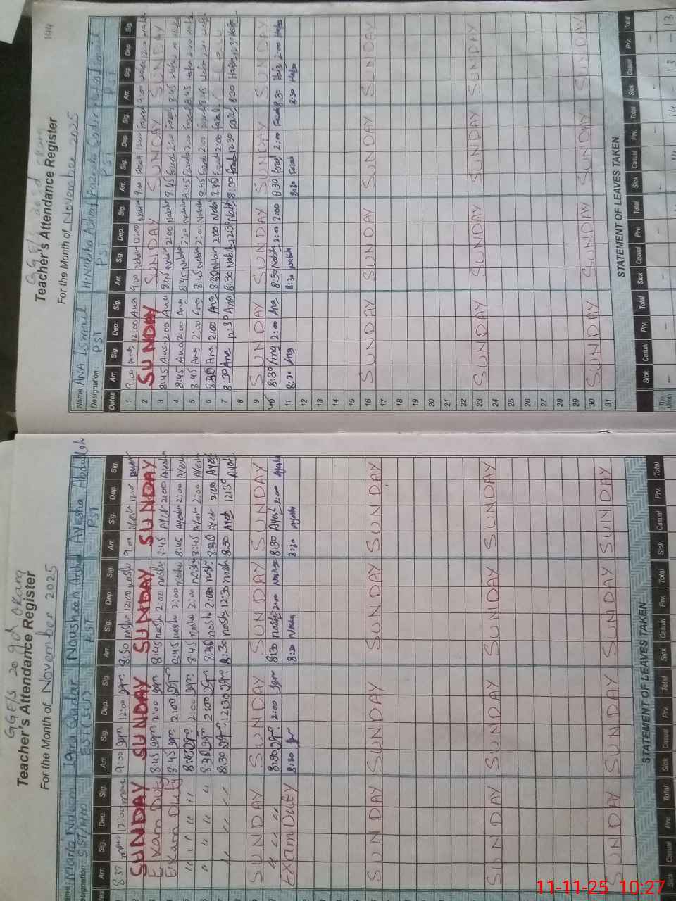 | 35**** | Ma**** Na**** | ESE Science | Regular | 0 | 0 | 0 | 0 | 0 | 0 | 0 | 0 | 0 | Exam Duty |