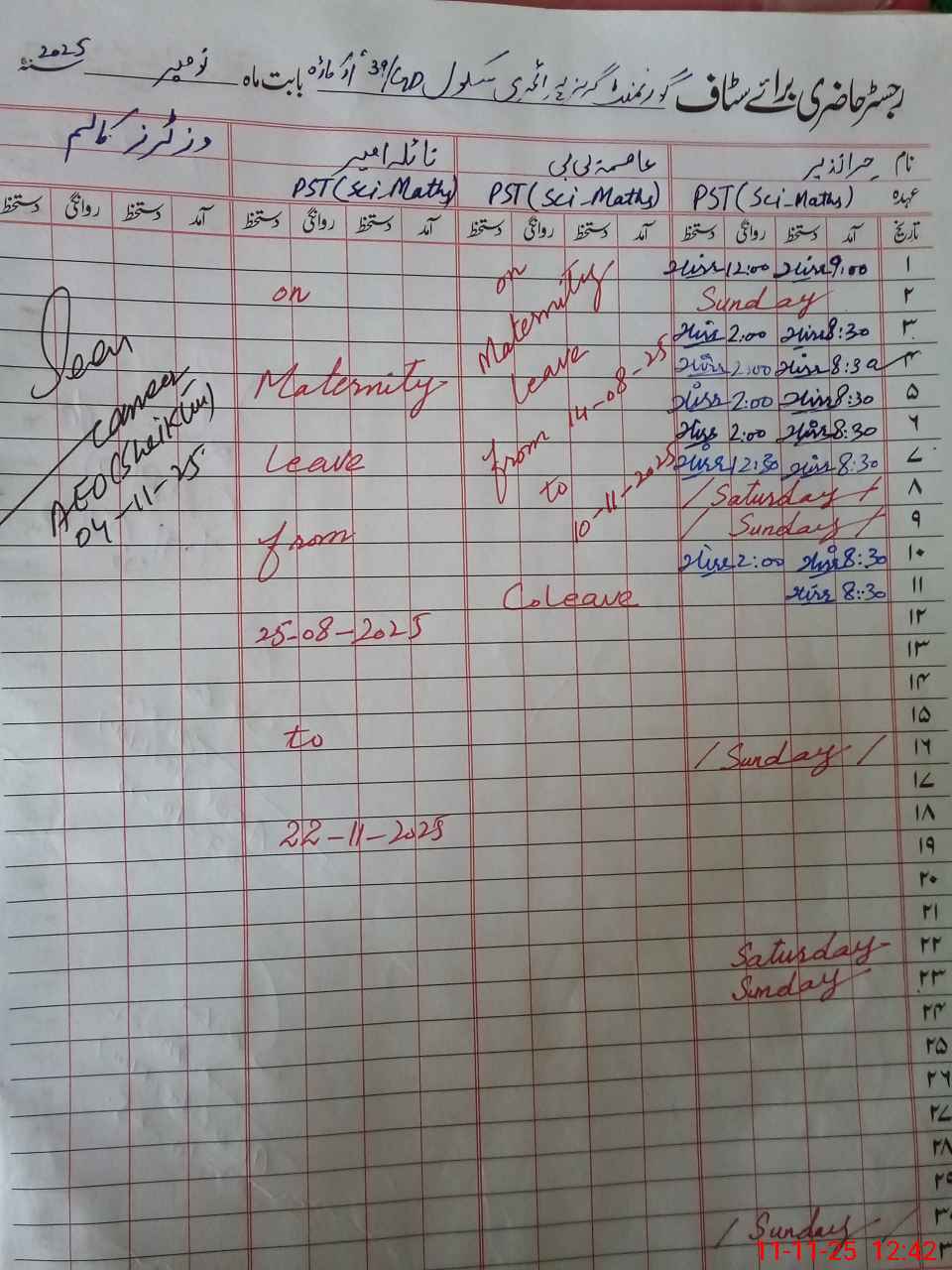 | 35**** | Na**** Am**** | Regular | 31 | 0 | 0 | 31 | 0 | 0 | 0 | 0 | 0 | Maternity | |
