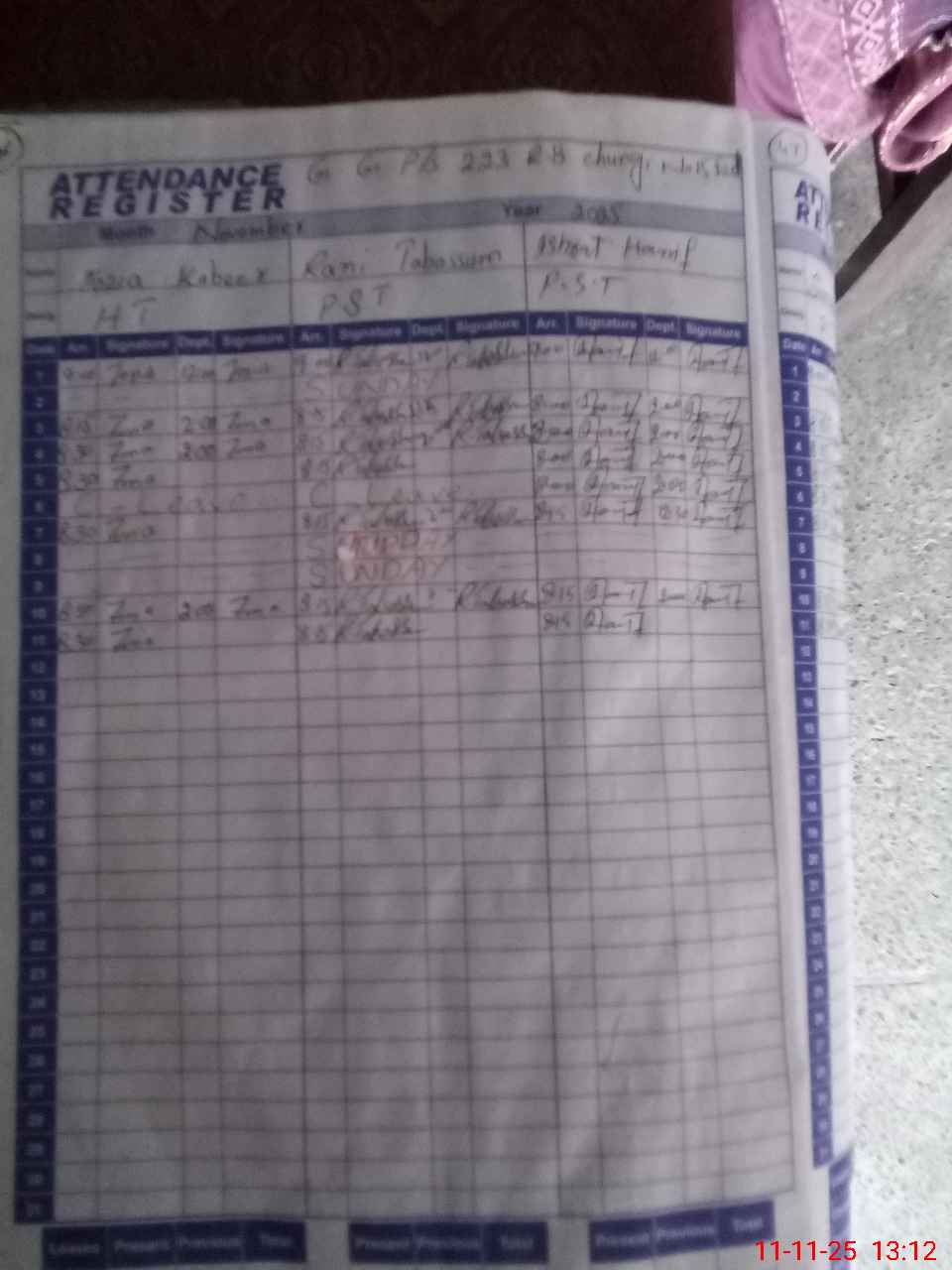 | CNIC | Full Name | Designation | R/C | Absence During Last Calender Month |