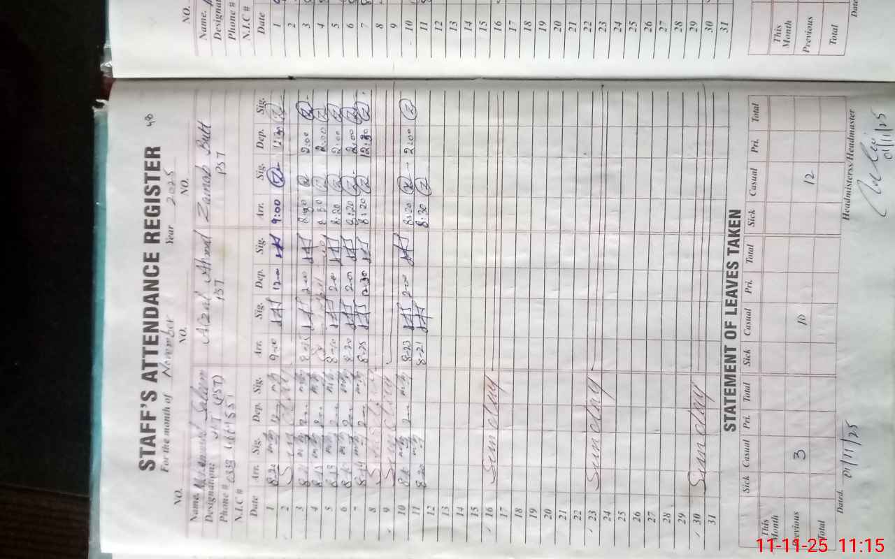 | Remarks (Use Separate Page if Required): AEO latest visit on 28 October 2025 02 Sti and 04 care foundation teachers are detailed Required repair and maintenance due rains | |||||