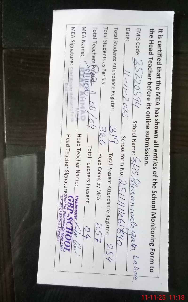 | EMIS Code: 35220594 | Name of School: GPS SHERANWALA GATE (EX-MCL) | |||