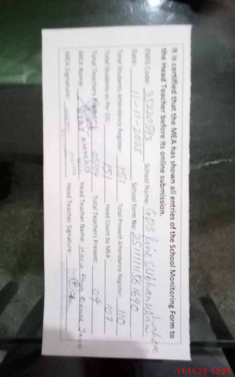 | EMIS Code: 35220593 | Name of School: GPS LINE SUBHAN KHAN | |||