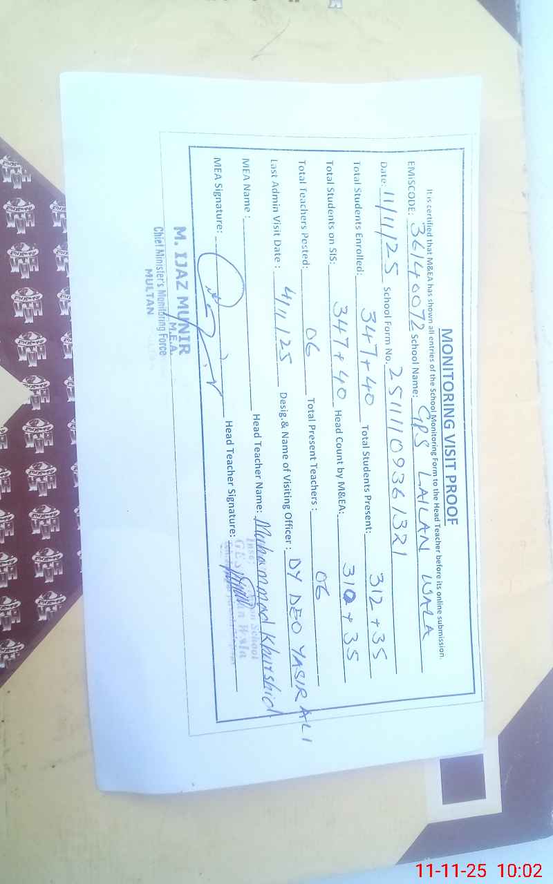| EMIS Code: 36140072 | Name of School: GPS LAILAN WALA P/O JALAL PUR PIR WALA | |||