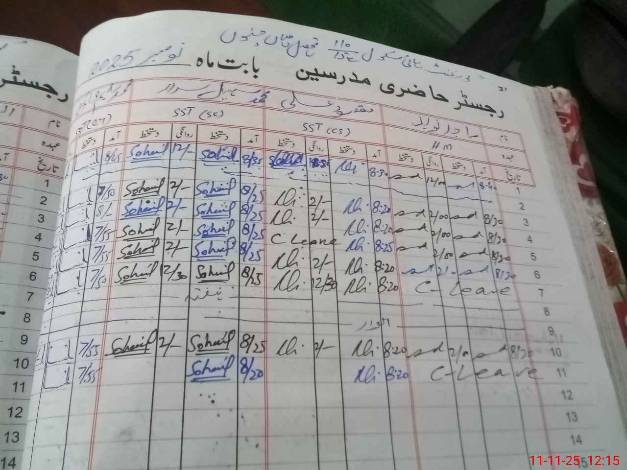 | CNIC | Full Name | Designation | R/C | Absence During Last Calender Month |