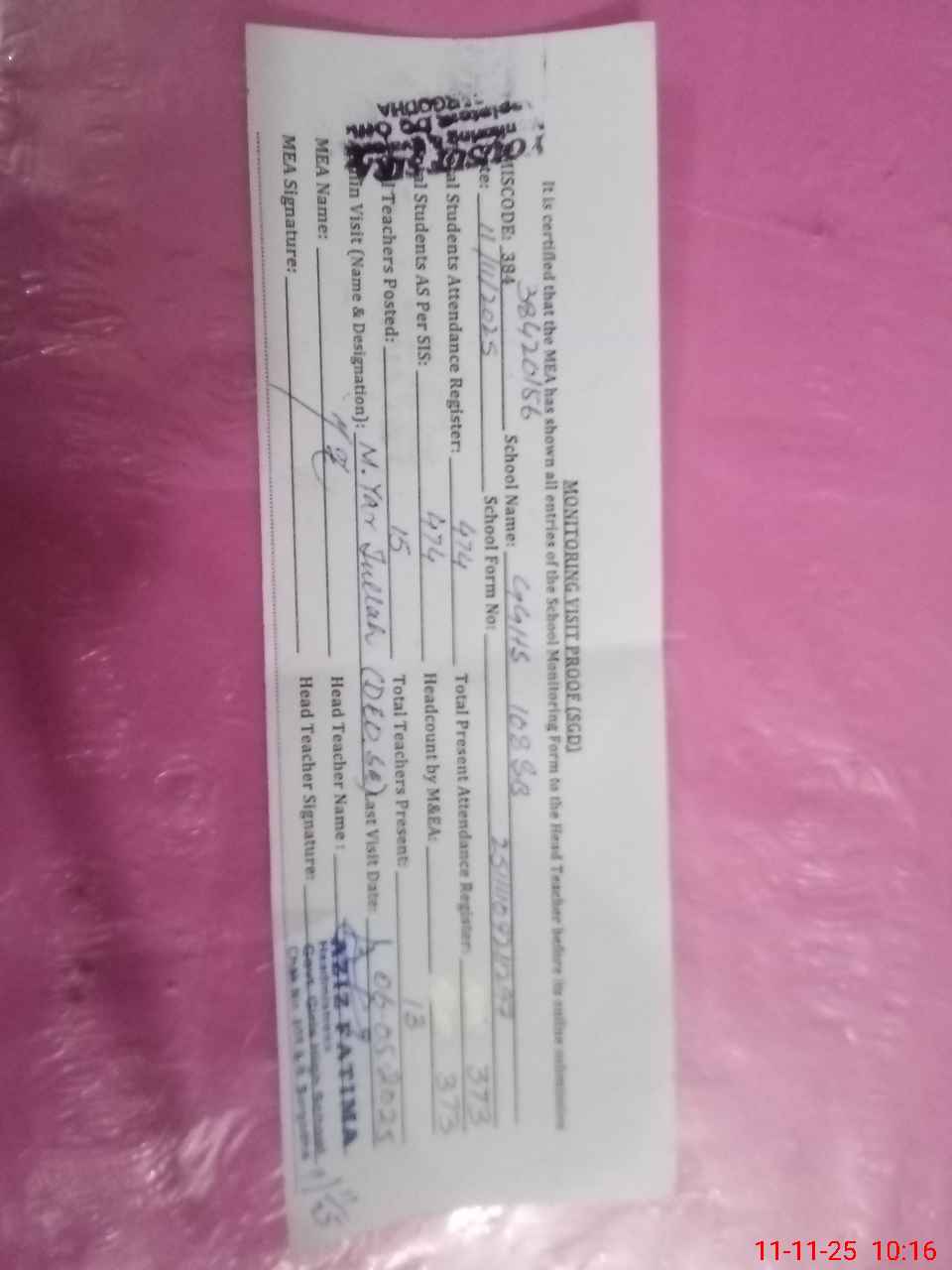 | Certified that this School was Inspected by the Undersigned MEA/DMO Today and the Information Stated Above is as Per Record. | |||||