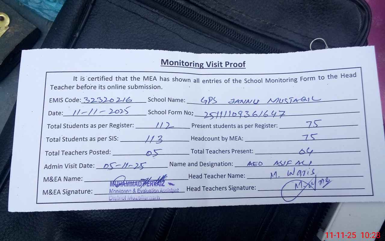 | EMIS Code: 32320216 | Name of School: GPS JANNU MUSTAQIL | |||