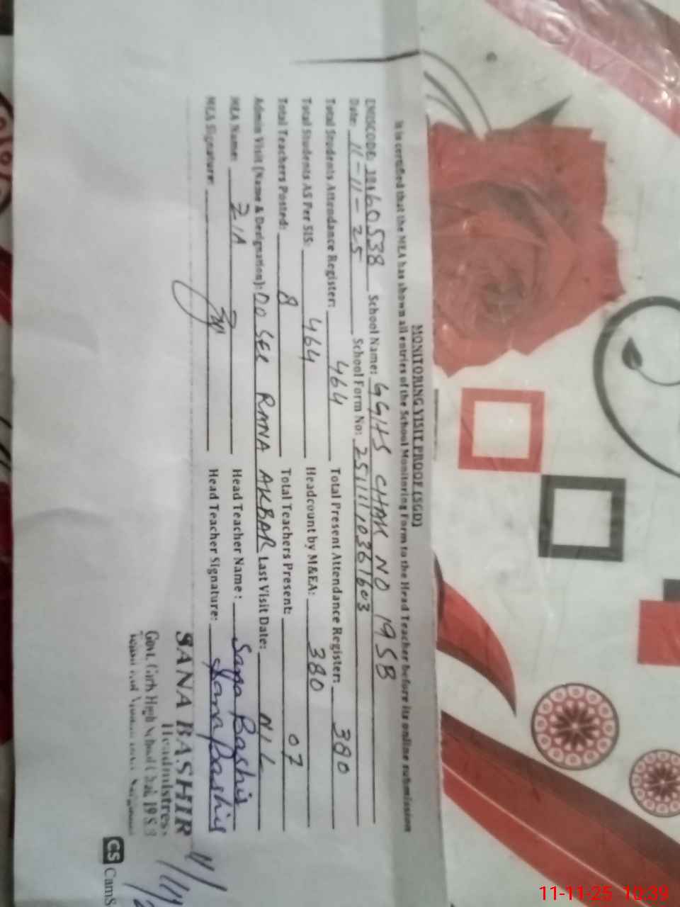 | Name: SA**** BA**** Designation: (School Headmaster's/Headmistress's) SST SCIENCE (HEADMISTRESS) Phone/Cell Number: 03**** |