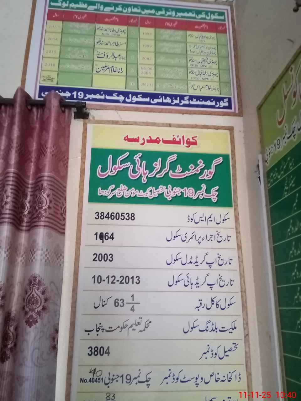 | EMIS Code: 38460538 | Name of School: GGHS CHAK NO.19 SB | |||