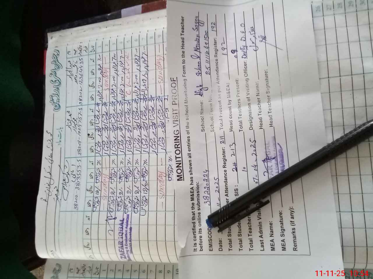 | Remarks (Use Separate Page if Required): Last visit DDEO on 7 April 2025 Total on sis 213 Total on register 211 | |||||