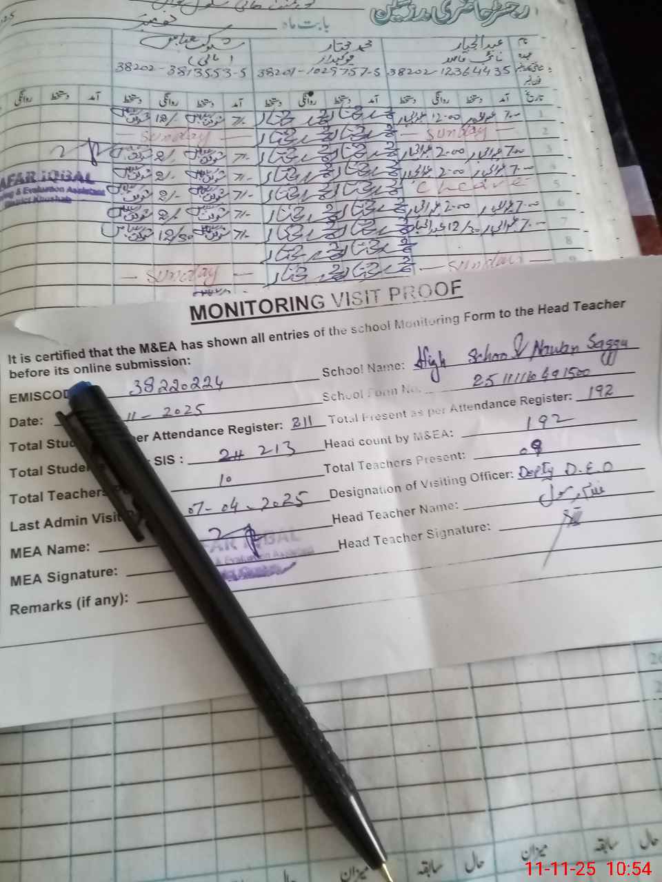 | Attendance Register | Head Teacher | MEA with School | Visit Proof |