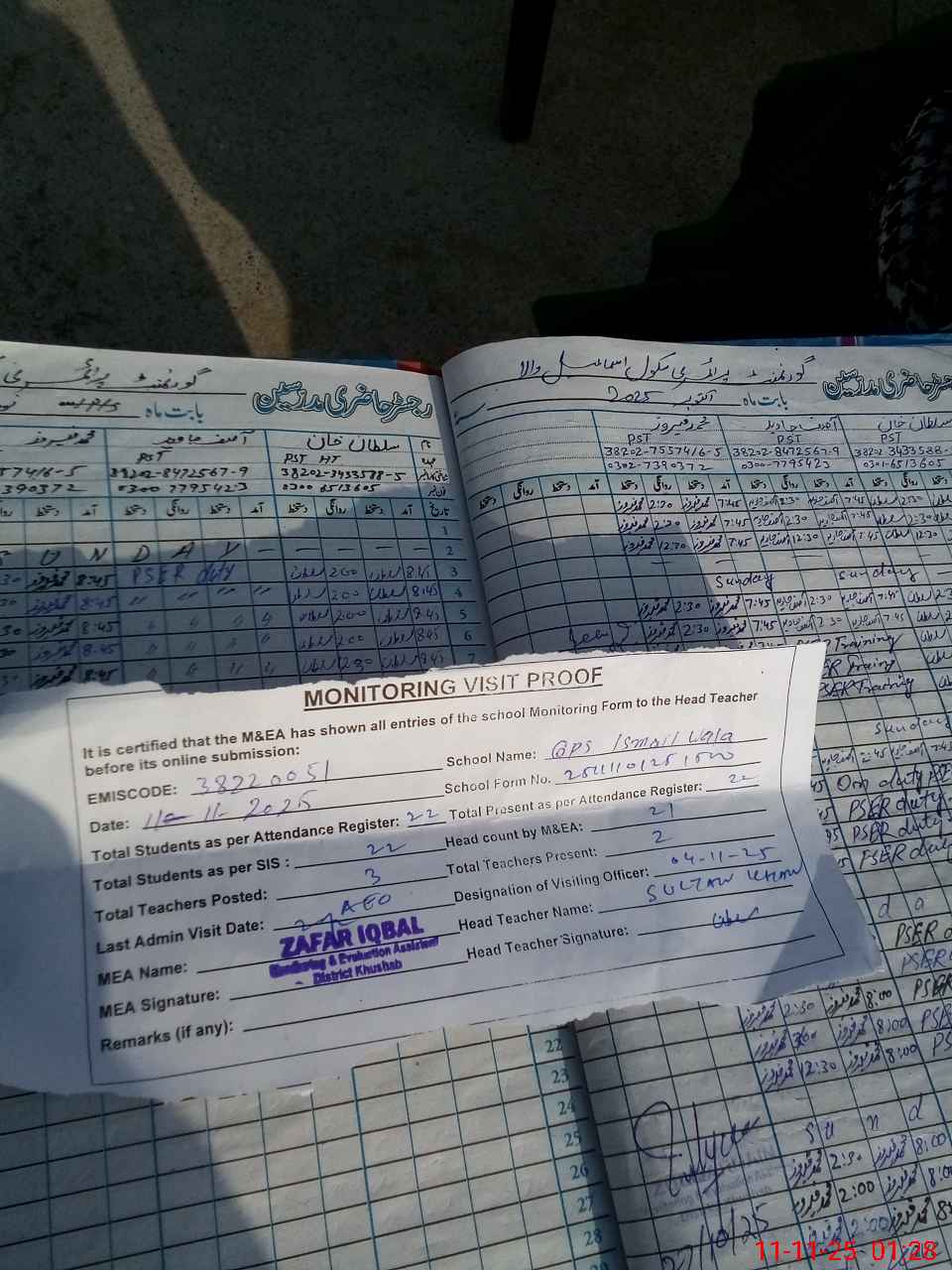 | Remarks (Use Separate Page if Required): Last visit AEO 04 Nov 2025 Total on sis 22 Total on register 22 | |||||