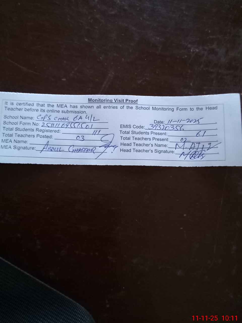 | EMIS Code: 39320356 | Name of School: GPS CHAK 6-A/4-L | |||