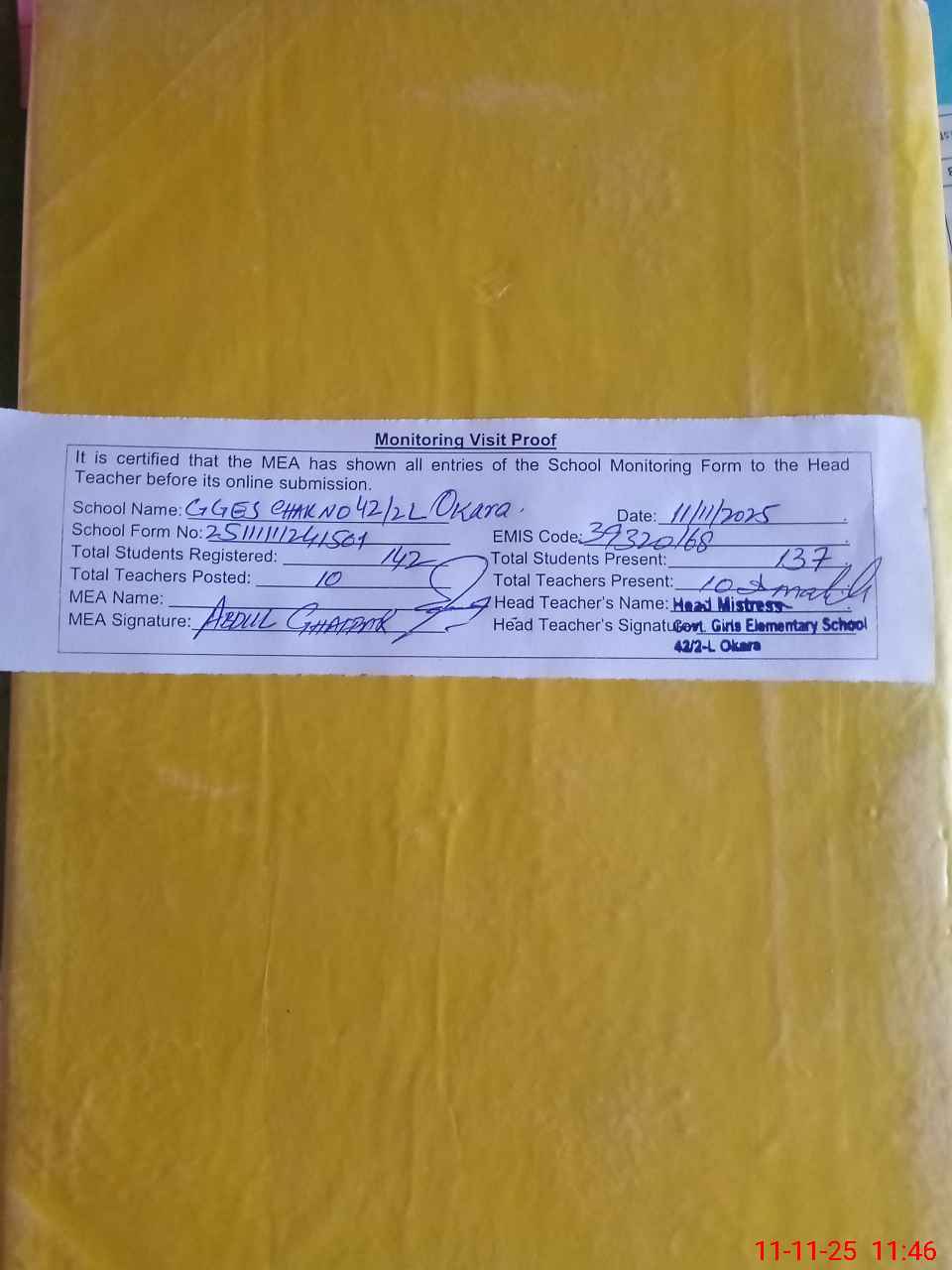 | EMIS Code: 39320168 | Name of School: GGES CHAK NO. 42/2-L | |||