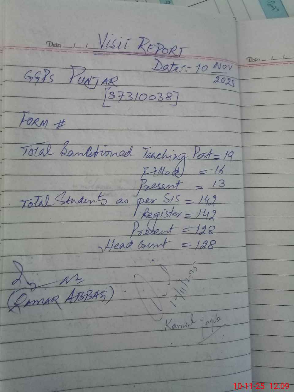 | Attendance Register | Head Teacher | MEA with School | Visit Proof |