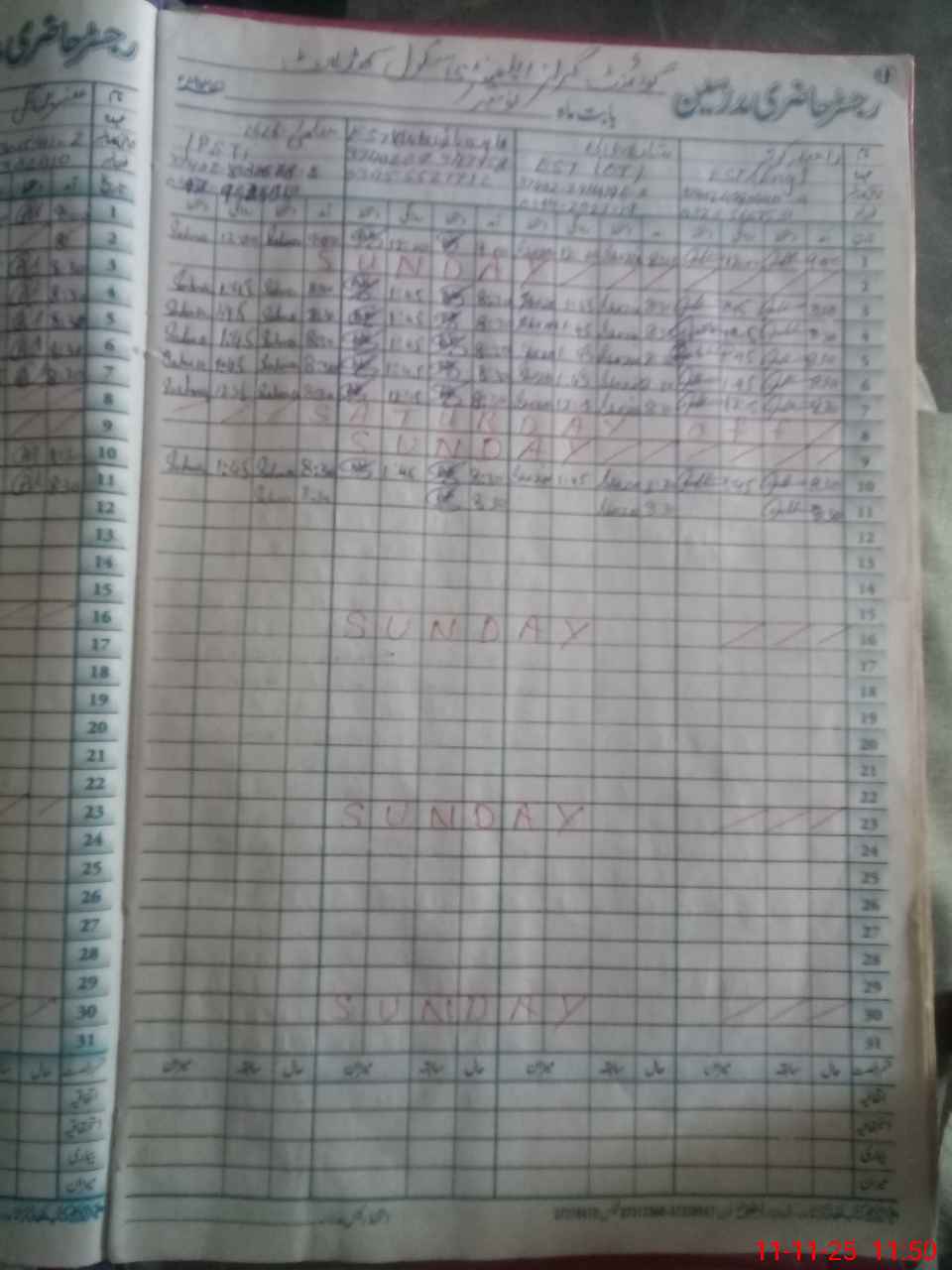| CNIC | Full Name | Designation | R/C | Absence During Last Calender Month |