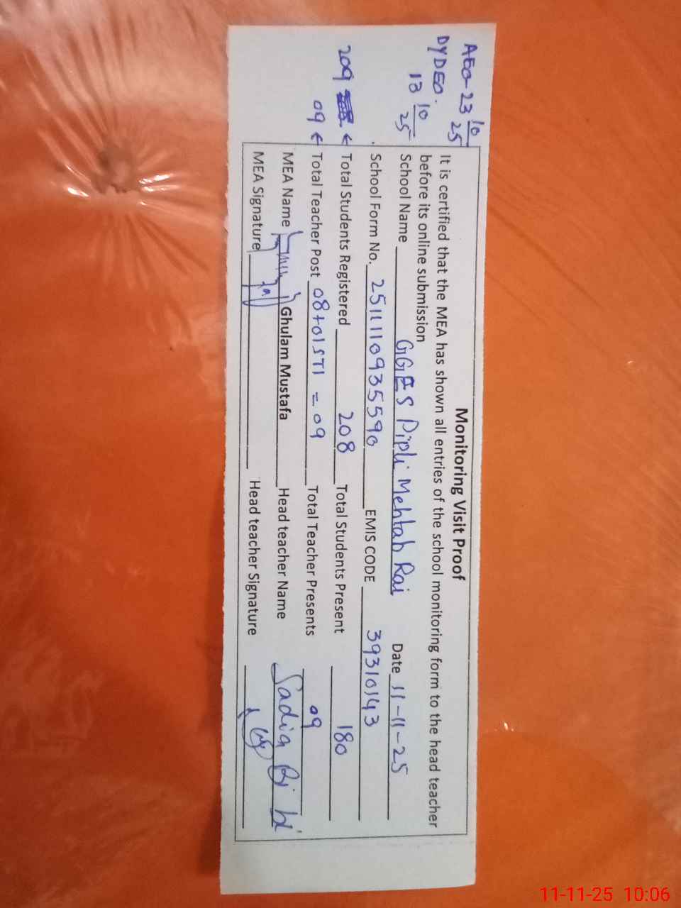 | EMIS Code: 39310143 | Name of School: GGES PIPLI MEHTAB RAI | |||
