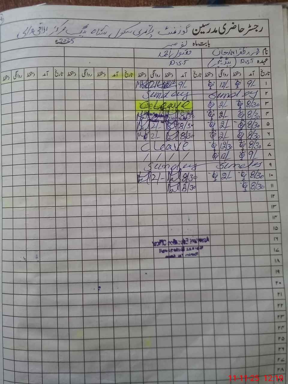 | Name: MU**** Za**** Ul**** Kh**** Designation: (School Headmaster's/Headmistress's) PST/ESE Phone/Cell Number: 03**** |