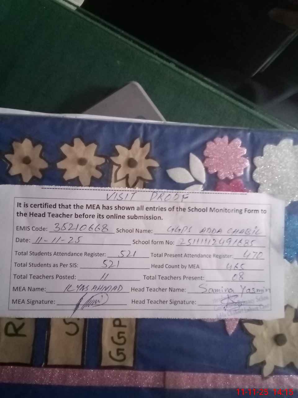 | EMIS Code: 35210668 | Name of School: GGPS ADDA CHABIL | |||