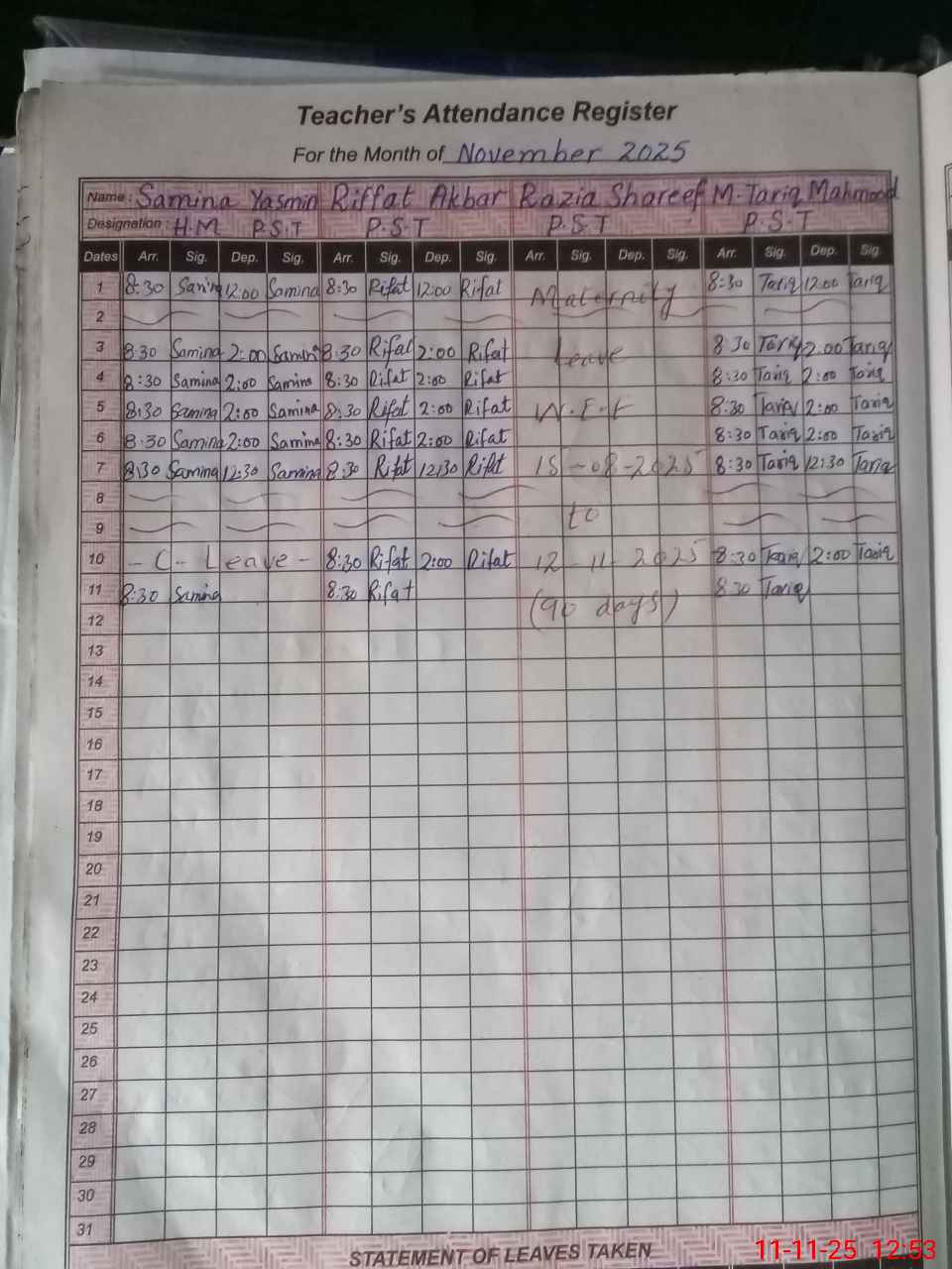 | Leave | Duty | Absent | Maternity | Medical | Ex- Pak |