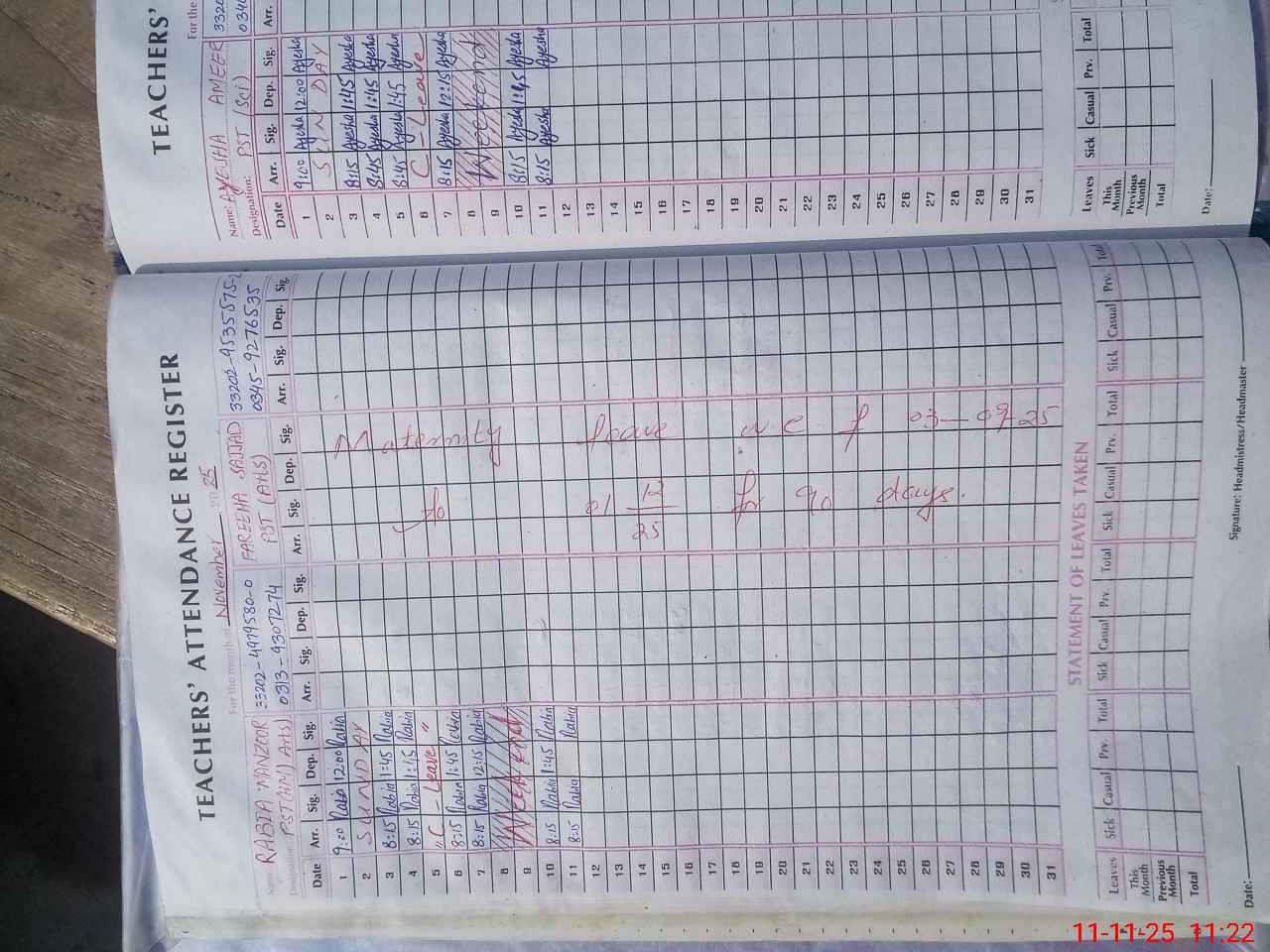 | Leave | Duty | Absent | Maternity | Medical | Ex- Pak |